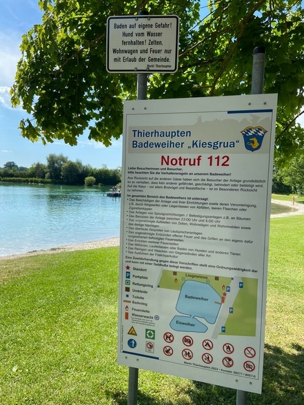 Sollten Sie im Sommer bei uns Urlaub machen, dann ist auch für Ihre Abkühlung gesorgt. Der Thierhauptener Badeweiher ist etwa 1 km vom Ort entfernt und wird Sie mit seiner gut gepflegten Außenanlage immer wieder zum Baden einladen. Der Thierhauptener Badeweiher bietet eine schöne Liegefläche und eine Station der Wasserwacht Meitingen mit einem Steg ins Wasser.