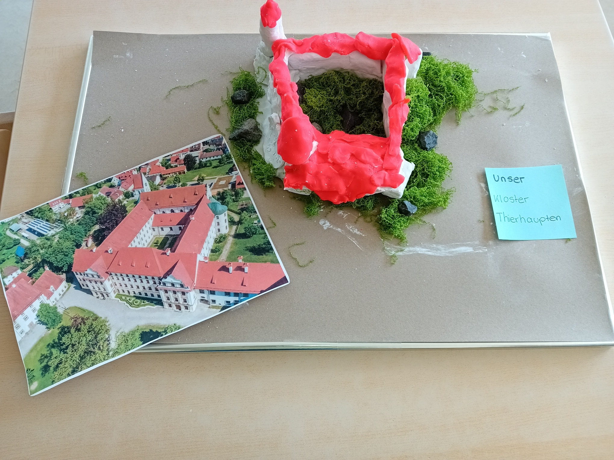 Zu diesem Thema habe ich gemeinsam mit einer Gruppe verschiedene Angebote durchgeführt, wie zum Beispiel das Nachbauen des Klosters Thierhaupten mit Modelliermasse und Knete.