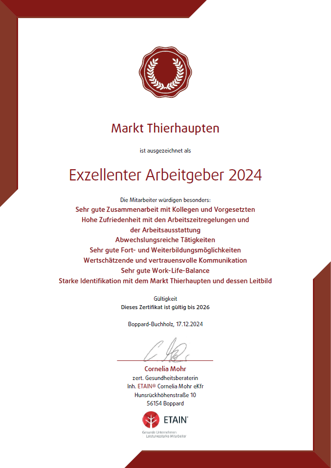 Sie sind hier: Startseite » News Heimatinfo » Der Markt Thierhaupten wurde ausgezeichnet als Exzellenter Arbeitgeber 2024