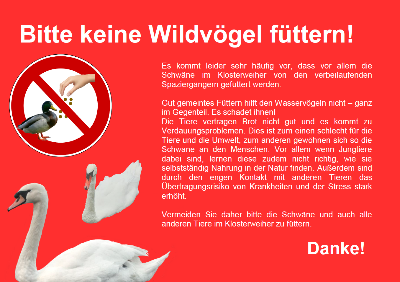 Sie sind hier: Startseite » News Heimatinfo » Information zum Füttern der Schwäne im Klosterweiher