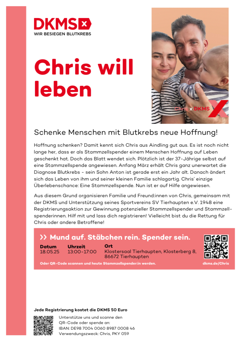 Sie sind hier: Startseite » News Heimatinfo » Information zur DKMS Stammzellspende