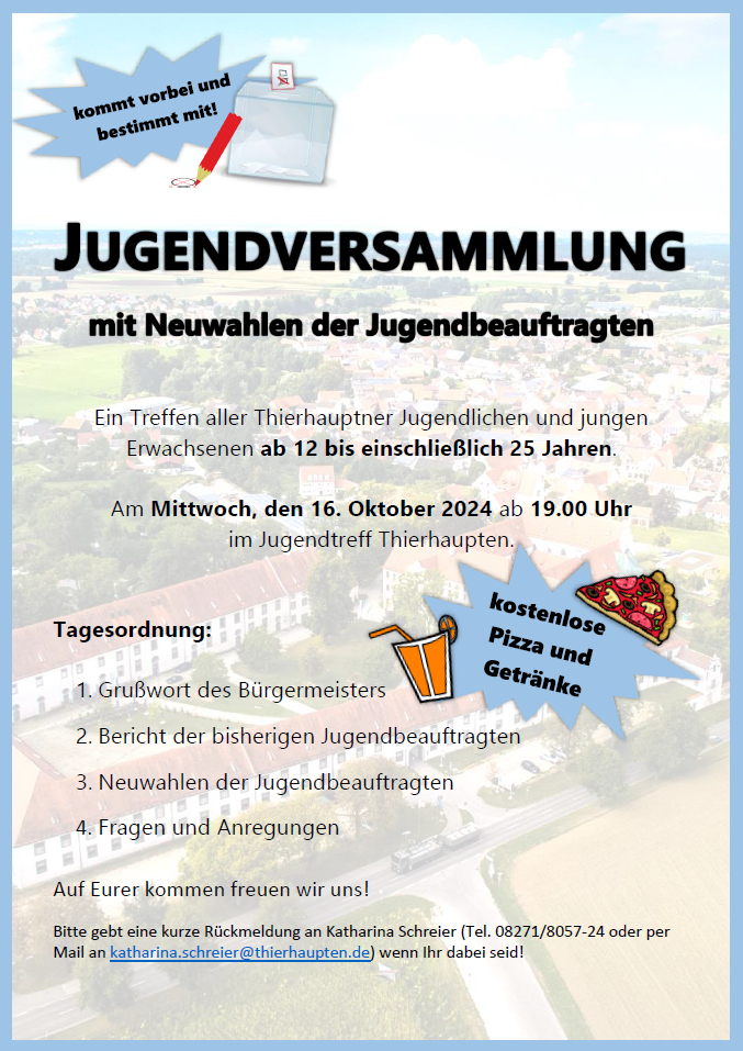 Hierzu sind alle Thierhauptner Jugendlichen und die jungen Erwachsenen herzlich eingeladen.