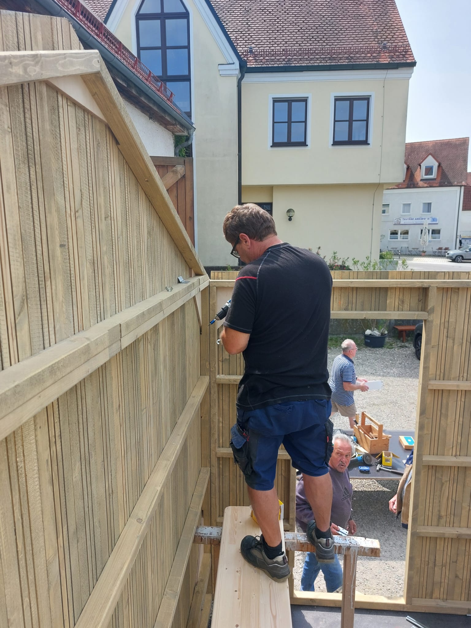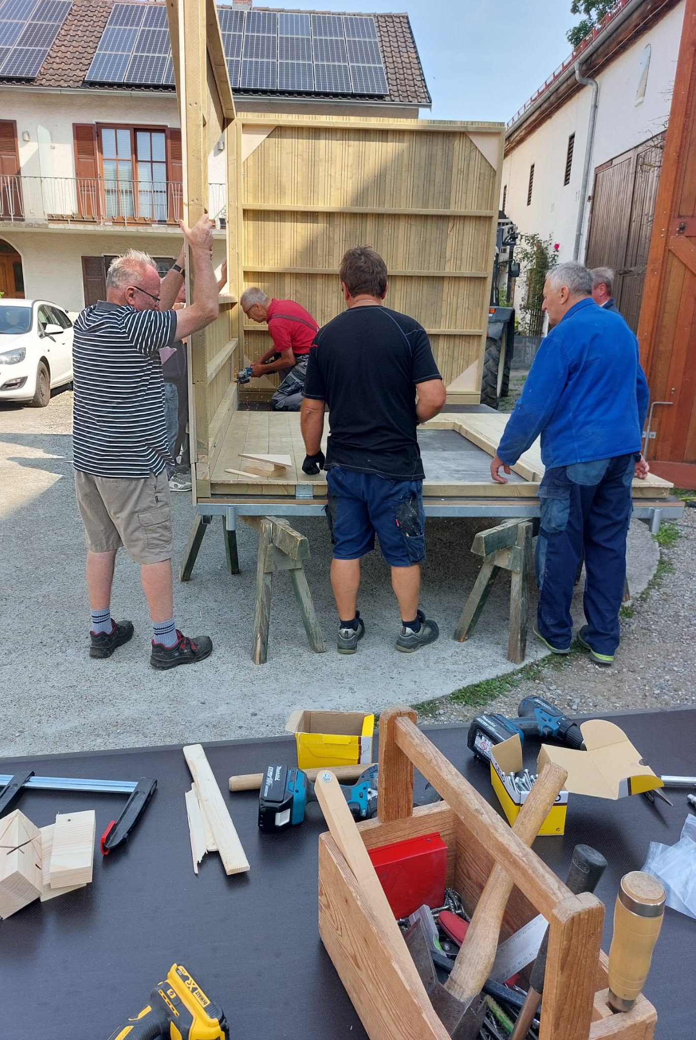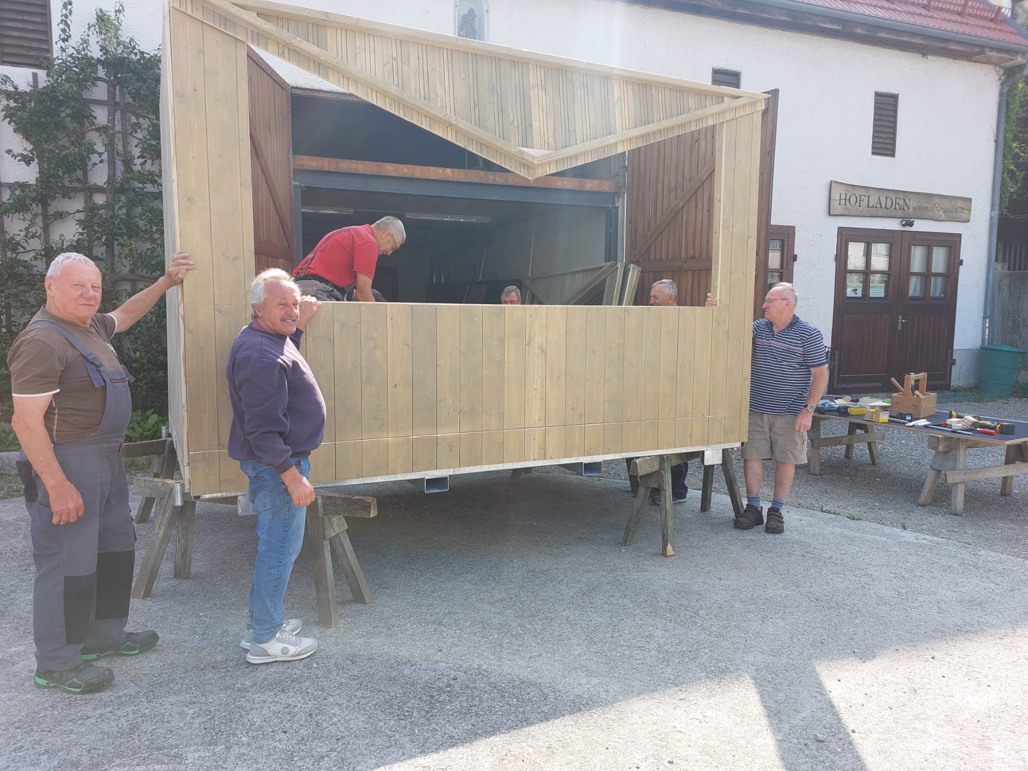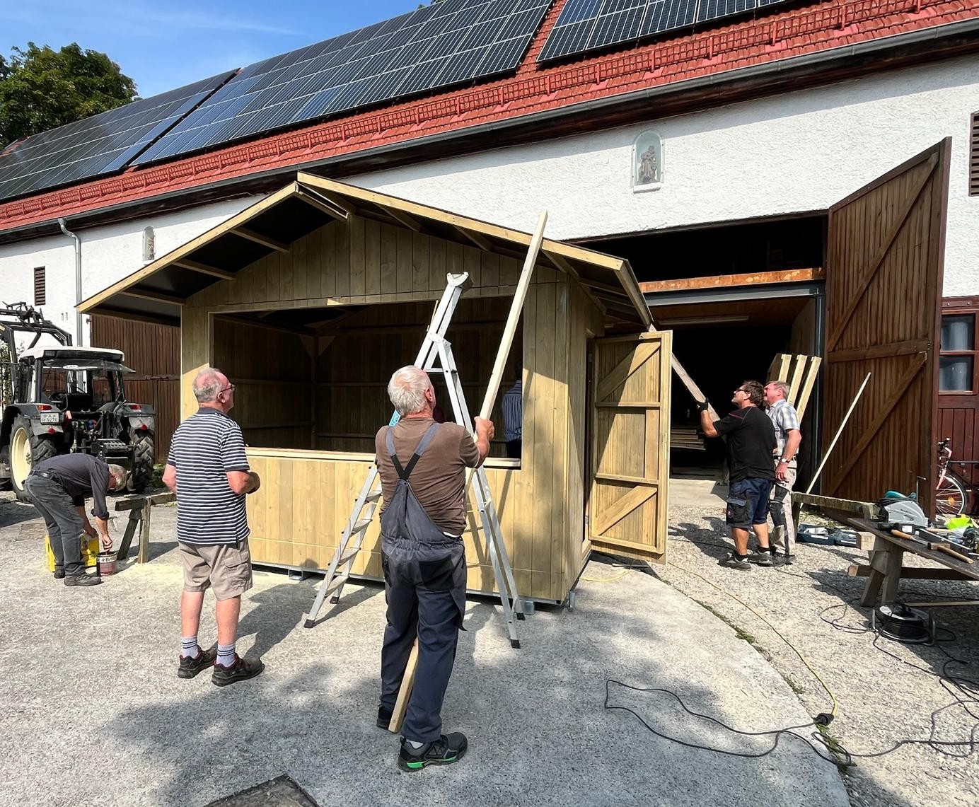 Seit Ende Juni / Anfang Juli werden für unseren Engerlmarkt neue Marktbuden gebaut. Gestern konnte die erste Bude durch das fleißige „Hüttenteam“ aufgebaut werden.