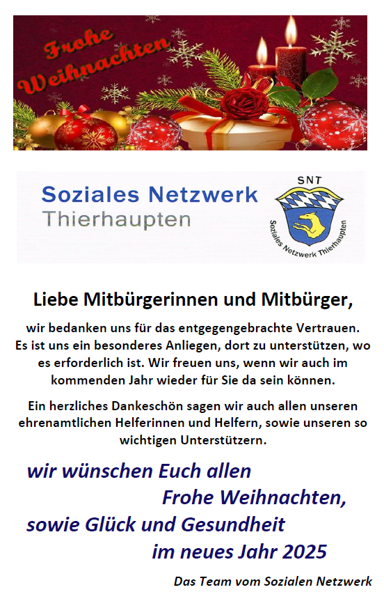 Sie sind hier: Startseite » News Heimatinfo » Weihnachtsgrüße aus dem sozialen Netzwerk Thierhaupten
